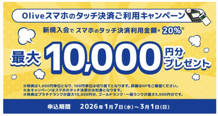 ③:Oliveスマホのタッチ決済ご利用キャンペーン