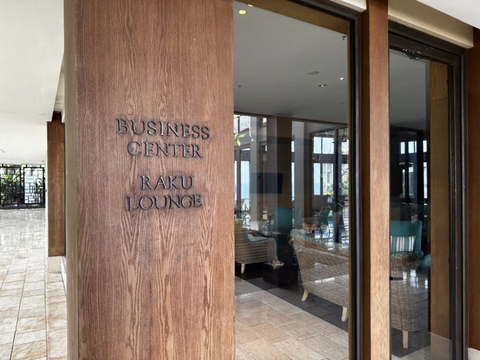 チェックイン手続きは完了したものの、部屋の清掃が終わっていないとのことで、RAKU LOUNGEで待っているよう案内されました。