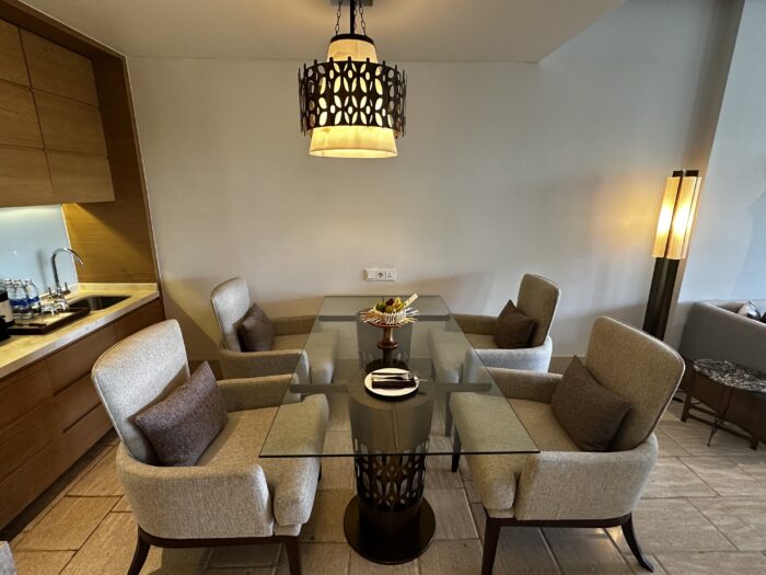 手前にはダイニングテーブルがあり、これだけのスペースがあればインルームダイニングを取りたくなる作りです。