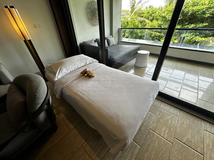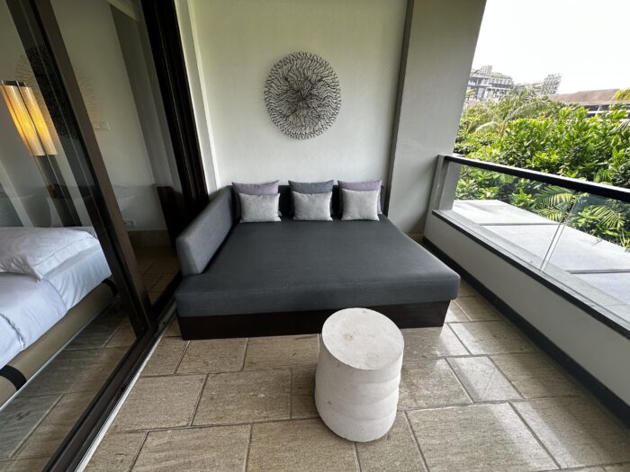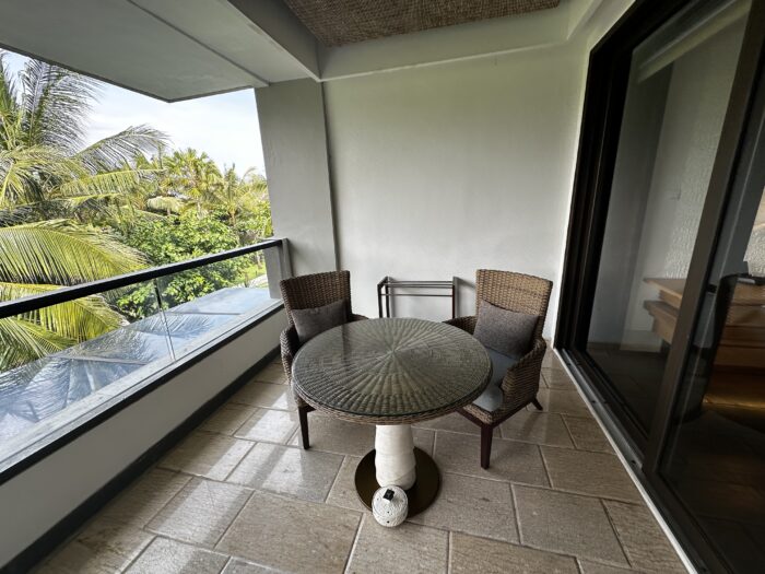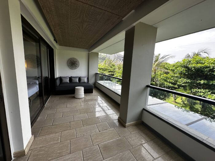 リゾートの5つ星ホテルにあるバルコニーの2部屋分くらいの広さがあります。