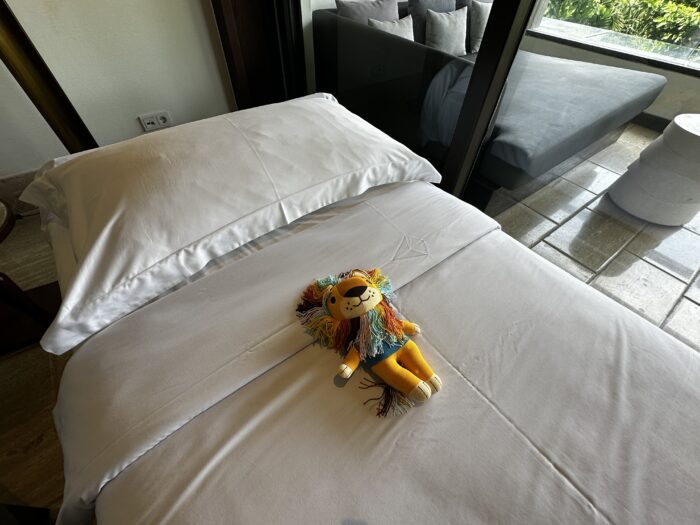 子供用のプレゼントでリッツカールトンのマスコットであるリオン君のぬいぐるみが置いてありました。