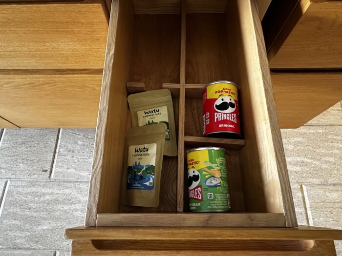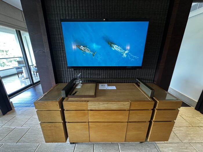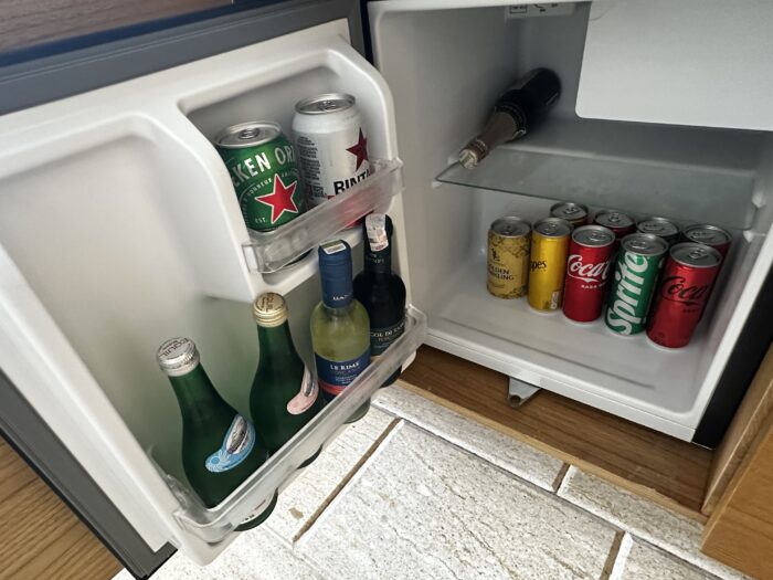 リビングのテレビボードの下には有料のミニバーサービスが置かれてました。