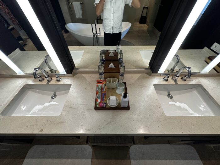 5つ星ホテルらしく、ダブルシンクの洗面台になっています。