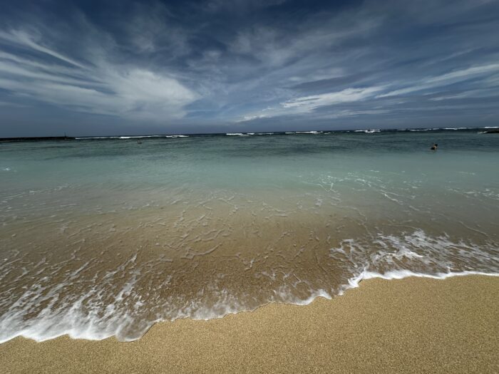 泳いでいる人もいましたが、防波堤がなく波が荒かったのでさっと見てプールに撤収しました。