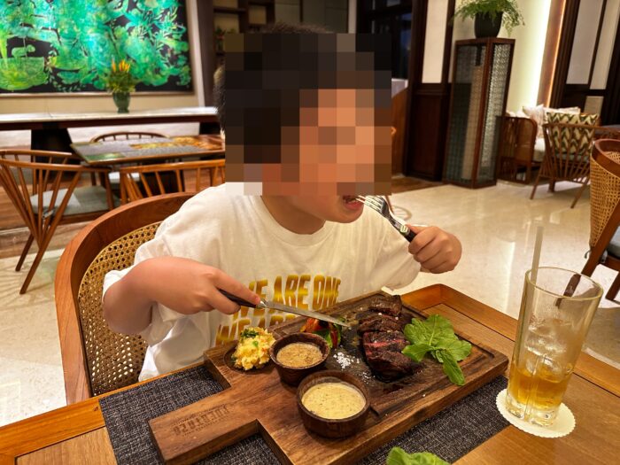 インドネシアのレストラン価格としては割高ですが、リッツカールトンのステーキハウスの半額くらいです。