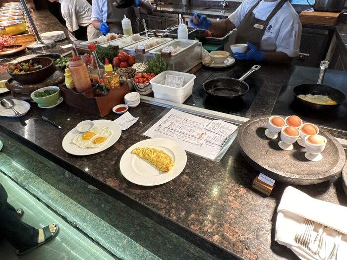 エッグステーションでは、スタッフがオーダーを取っていて、出来上がるとテーブルまで持ってきてくれます。