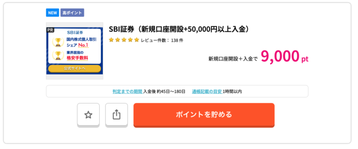 SBI証券のポイントサイトでの口座開設で大量ポイント獲得の案件をご紹介してきました。