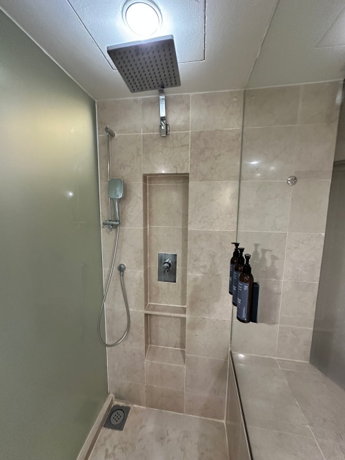 シャワールームは、レインシャワーとハンドシャワーの2タイプが使えます。