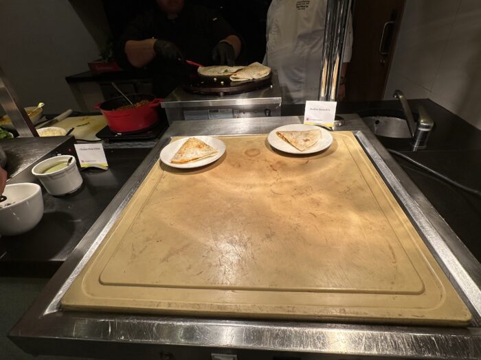 ペンネ、マッシュルームスープ、右側はシェフにオーダーして作ってもらうケサディーヤがありました。