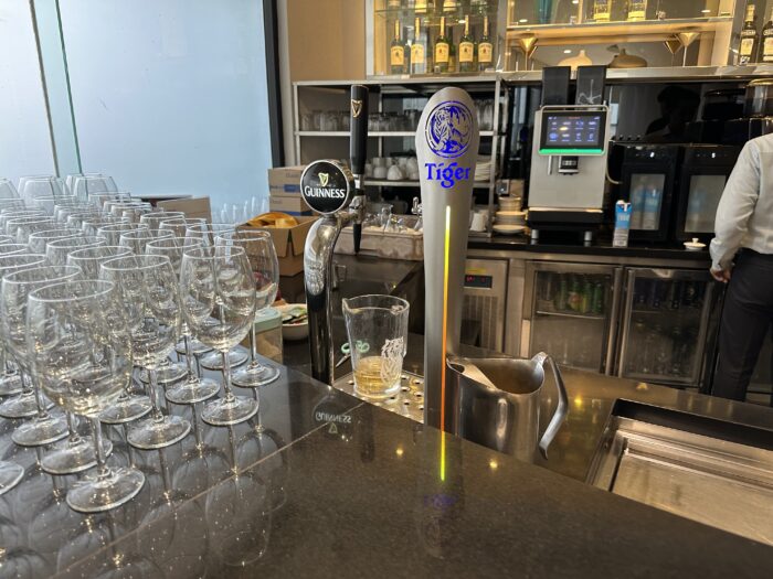 ラウンジはかなり広いスペースを使って作られていて、隣のテーブルとの距離も広めにとっています。