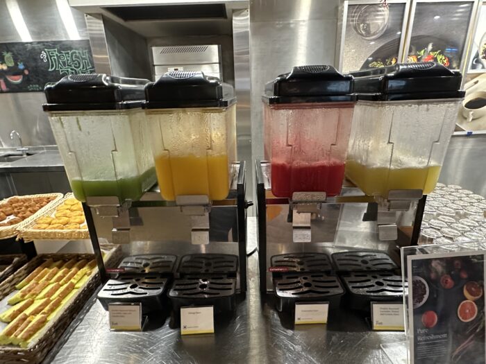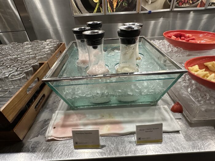 フレッシュジュース、スムージー、写真に写ってませんがヨーグルトコーナーも多数のフレーバーが用意されています。