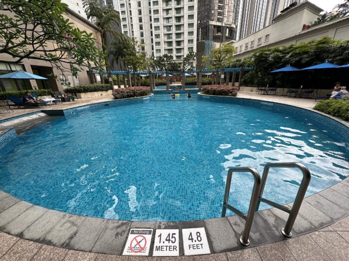 プールは屋外のインフィニティプールとなっていますが、階層も低く周りは高層の建物ばかりとなっていますが、開放感はある作りになっています。