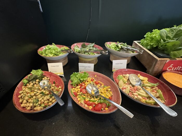 ひよこ豆のサラダ、トウモロコシのサラダ、チキンサラダ