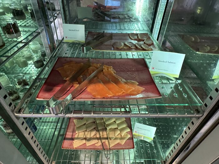 スパークリングワイン、赤/白ワイン、ビールが目に入ったところにはありましたが、ウイスキーやラム、ジンといったお酒も置いてあると思います。