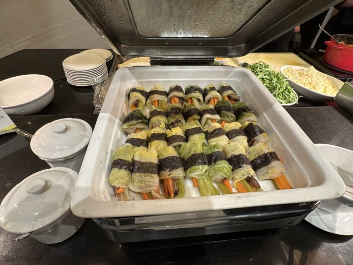 子供向けのメニューではなかったので、軽めに食べて外に夕食をいただきに出ましたが、大人だけならばお酒も飲み放題なので十分に満足できる内容ではないかと思います。